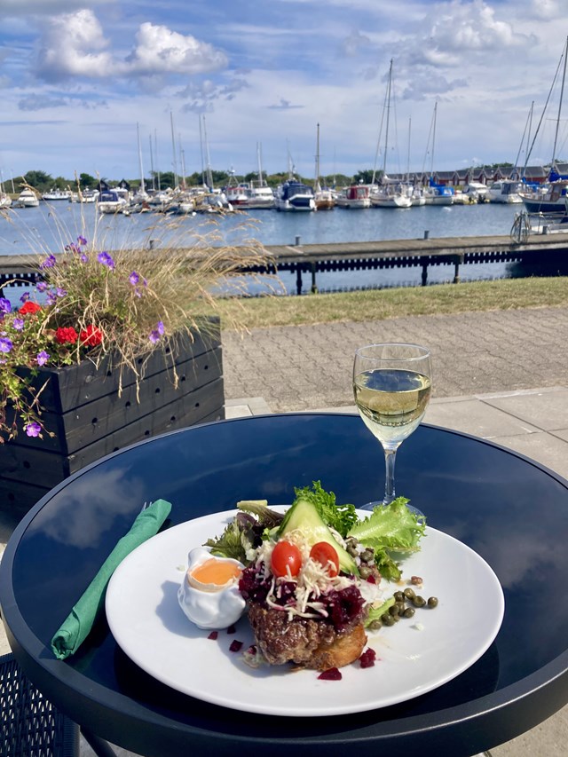Med en nyetableret terrasse ud mod havnen er der skabt endnu bedre rammer for gæsterne, og her opleves en Skøn terrasse med udsigt over havnen. Her kan man nyde maden med udsigt til vandet og mærke den særlige stemning, der opstår, når god mad og gode omgivelser går hånd i hånd.