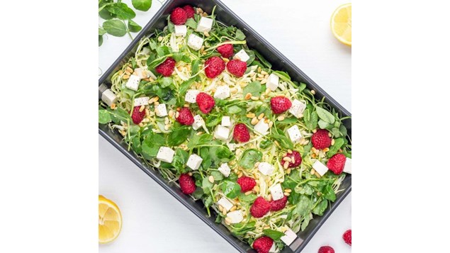 En skøn sommersalat med hindbær, spidskål, pinjekerner, salatost og ærteskud - toppet med en lækker citrondressing Find opskriften her: https://mambeno.dk/opskrifter/sommersalat-med-hindbaer-spidskaal-pinjekerner-salatost-og-aerteskud/