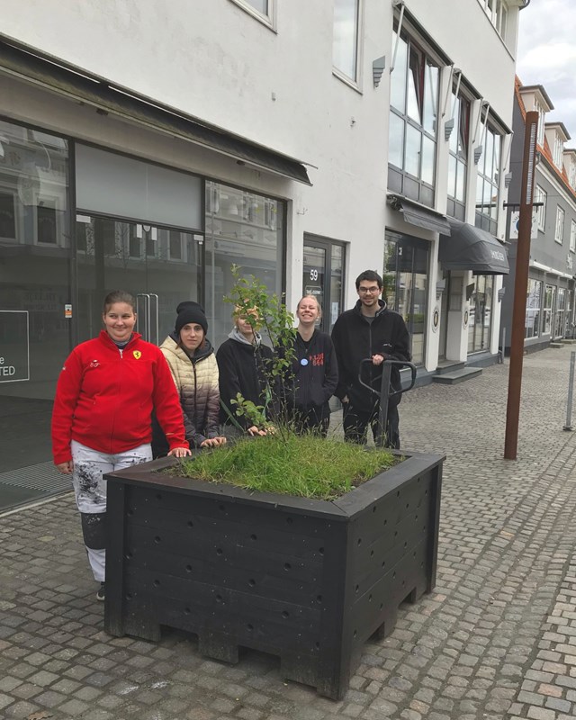 Efter genåbningen er der igen kommet liv i Frederikshavns nye samlingsgade. Nu får gæster og beboere også vilde grønne oplevelser i gågaden, hvor æbletræer, enggræs og insektvenlige planter er rykket ind i 20 store plantekasser