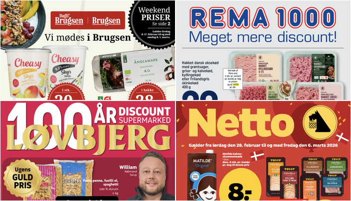Rema 1000 har hakket dansk oksekød med grøntsager, grise- og kalvekød, kyllingekød eller Frilandsgris skinkekød til kun 29 kr. for 400 g. Tilbuddet gælder fra søndag den 1. marts til lørdag den 7. marts.