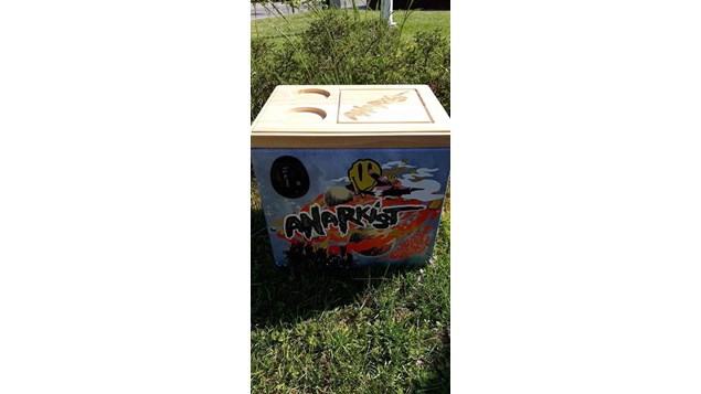 Derfor : fed Anarkist køleboks med 6 dåser af de populære Anarkist .. udover køling, fungerer boksen også som et lille bord.