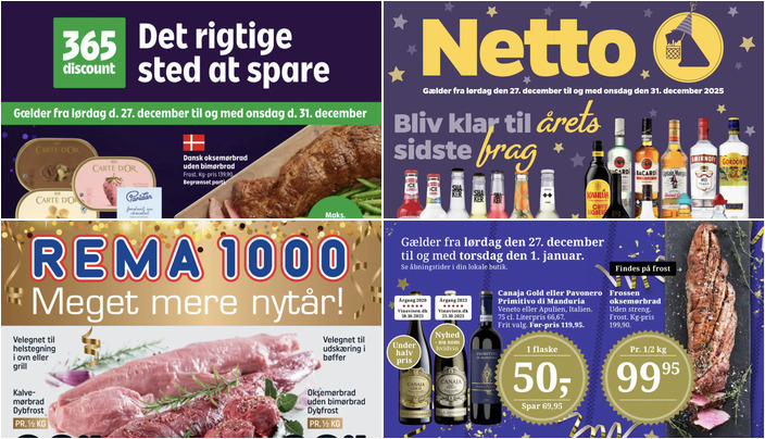 Hos Løvbjerg kan du få Hvidebæk store hotdog eller wienerpølser til en pris på 49,99 kr. pr. 800 g. Tilbuddet gælder fra lørdag den 27. december til onsdag den 31. december.