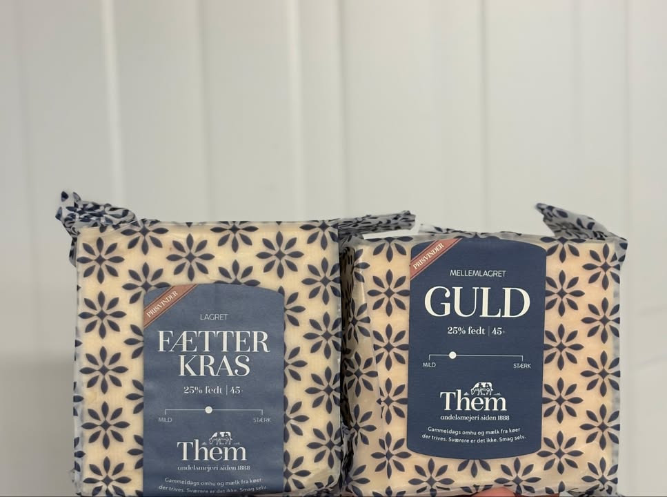 Vi har et parti ost 45+ 25 % fedt fra Them andelsmejeri