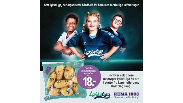 For hver solgt pose modtager LykkeLiga 50 øre i støtte fra Lammefjordens Grøntsagslaug.