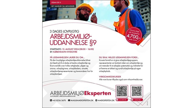 Skab et sikrere og sundere arbejdsmiljø med vores lovpligtige arbejdsmiljøuddannelse §9!