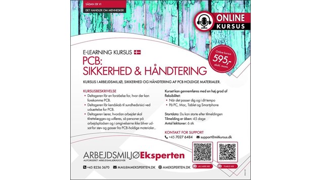 Tilmeld dig lovpligtigt e-learning kursus om pcb-sikkerhed og håndtering i dag
