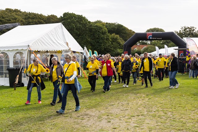 Fighterne i de gule trøjer indledte årets Stafet For Livet på Knivholt. Foto: Michael Madsen